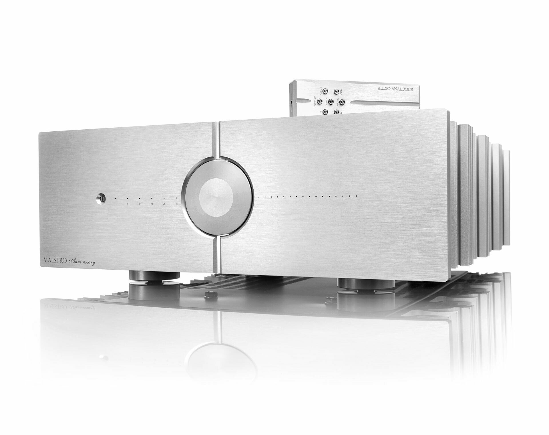 Le Maestro Anniversary est un appareil unique en son genre. Sa puissance remarquable, qui double toujours lorsque l’impédance diminue, et ses extraordinaires qualités de pilotage s’accompagnent d’une musicalité et d’un raffinement uniques, qu’on ne retrouve pas facilement dans des amplificateurs aussi "musculaires".